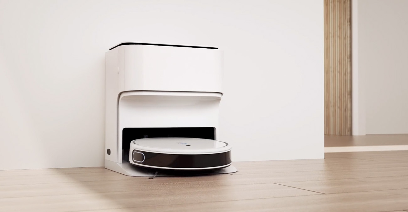 Der neue Saug- und Wischroboter Yeedi Mop Station* wird mit einer Ladestation ausgeliefert, die das Schmutzwasser aufnimmt und die Wischmopps reinigt.