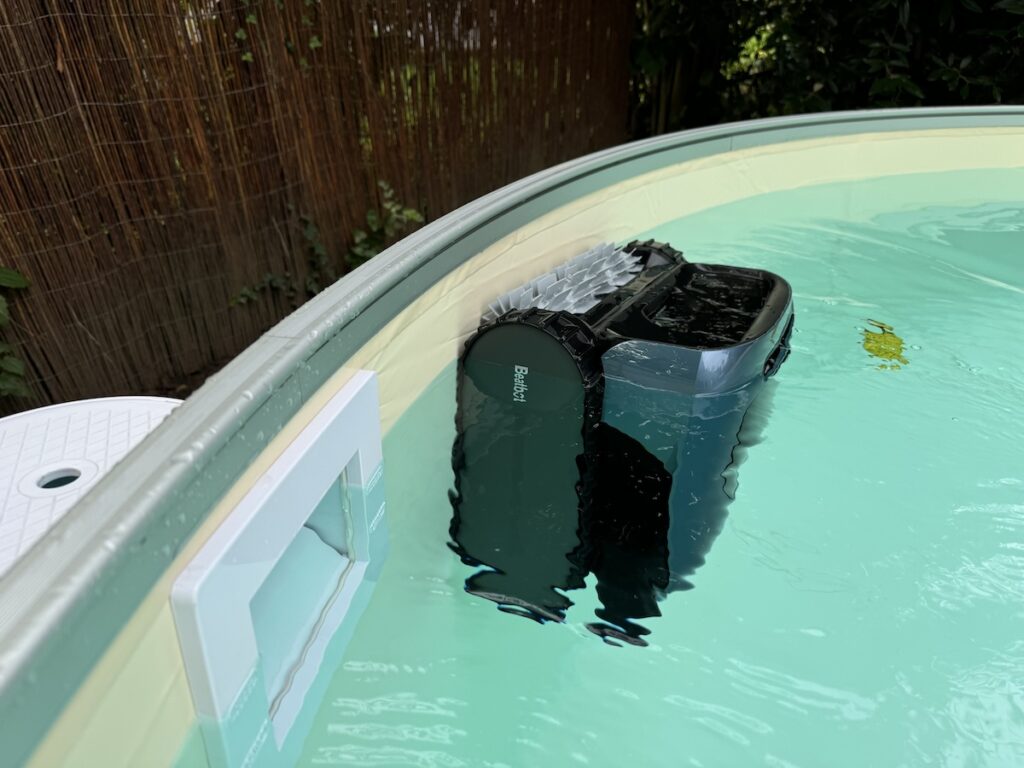 Kommen wir zur wichtigsten Frage: Wie gut reinigt der BeatBot AquaSense Pro? Die Antwort: äußerst gründlich. Der Roboter kann den Boden, die Wände und – was ihn besonders von vielen Konkurrenzprodukten abhebt – auch die Wasseroberfläche säubern. Dazu öffnet sich im „Pro-Modus“ eine Klappe an der Vorderseite des Geräts, und der BeatBot saugt mit einer beeindruckenden Leistung Blätter, Insekten und anderen Schmutz von der Wasseroberfläche auf.