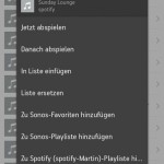Es ist jedoch nicht möglich, Musik via DLNA oder Apple AirPlay an den Lautsprecher zu schicken. Spotify connect wird ebenfalls leider nicht unterstützt, man muss also die Sonos-App nutzen. Eine Ausnahme ist hier Google Play Music auf Android-Geräten: Bei Google Play Music gekaufte Musik kann direkt aus der App „Play Music“ an den Sonos-Lautsprecher gesendet werden. Hierzu kann der Lautsprecher einfach in der App für die Wiedergabe ausgewählt werden. Musik, die aus anderen Quellen stammt und auf dem Android-Smartphone gespeichert ist, kann so jedoch nicht über Sonos wiedergegeben werden. Praktisch bei der Spotify-Integration ist, dass man mehrere Spotify-Accounts hinterlegen kann – so kann das Sonos-System von mehreren Familienmitgliedern genutzt werden.